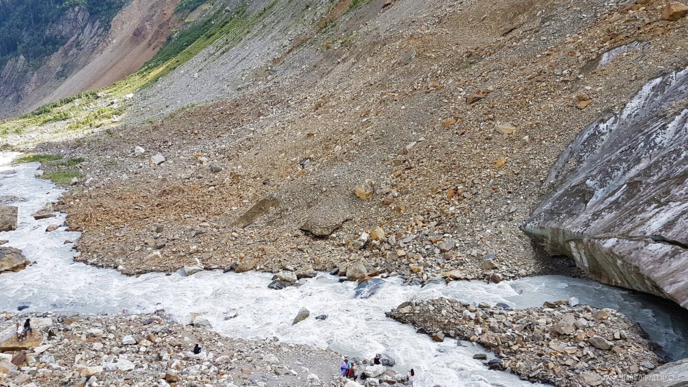 Река из ледника очень бурная, не пригодная для питья. Набирать воду можно в прилегающих ручьях, которые есть повсеместно. У ледника будьте аккуратны, сверху летят мелкие камни, могут отскакивать на 10-20 метров.
