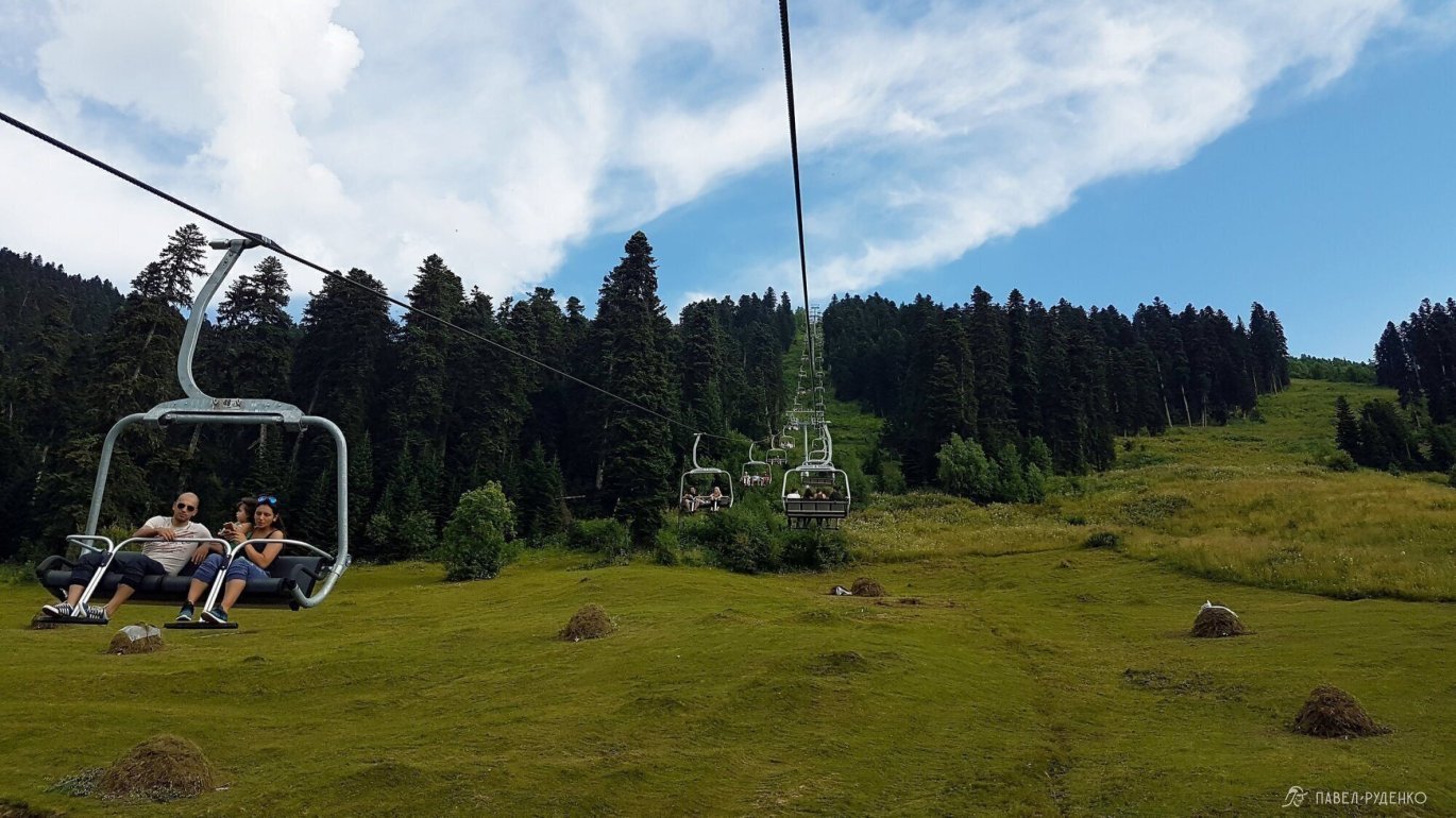 Если хочется просто остановиться с палаткой в красивом и тихом месте, то добираетесь пешком или на такси до горнолыжного подъемника. Покупаете билет и поднимаетесь наверх, далее 1 км. налево и выбираете подходящую полянку. Воды здесь нет, ее можно набрать в кафе у подъемника.