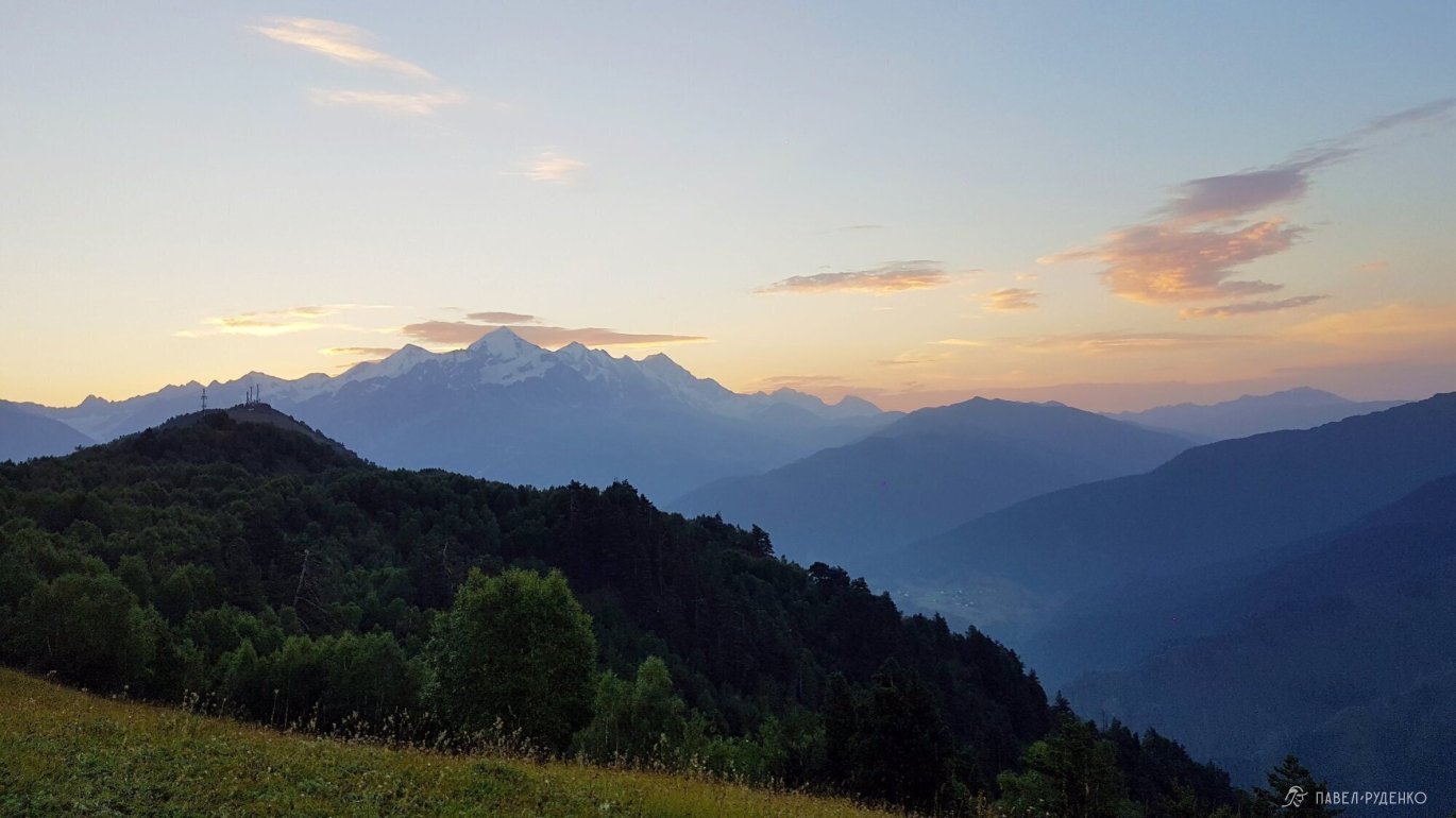 Наверху открывается вид на Кавказкий хребет, в безоблачную погоду можно увидеть Эльбрус.