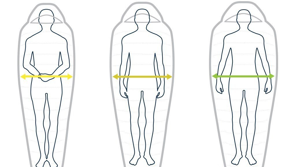Совет: В слишком шириоком спальнике, вы не сможете нагреть воздух и замерзнете. И наоборот, в слишком тесном спальнике сон будет не комфортным и холоднем от избыточного натяжения и сжимания утеплителя в узких точках.