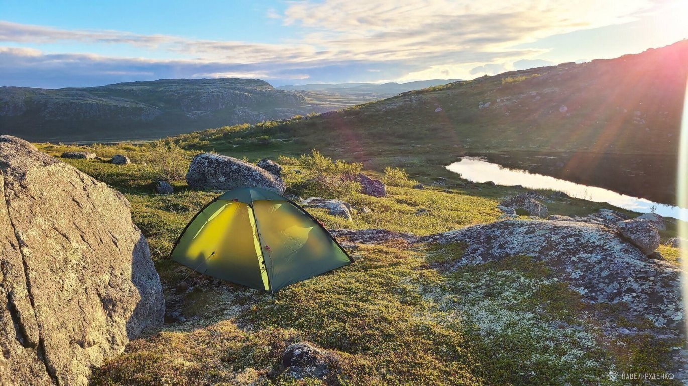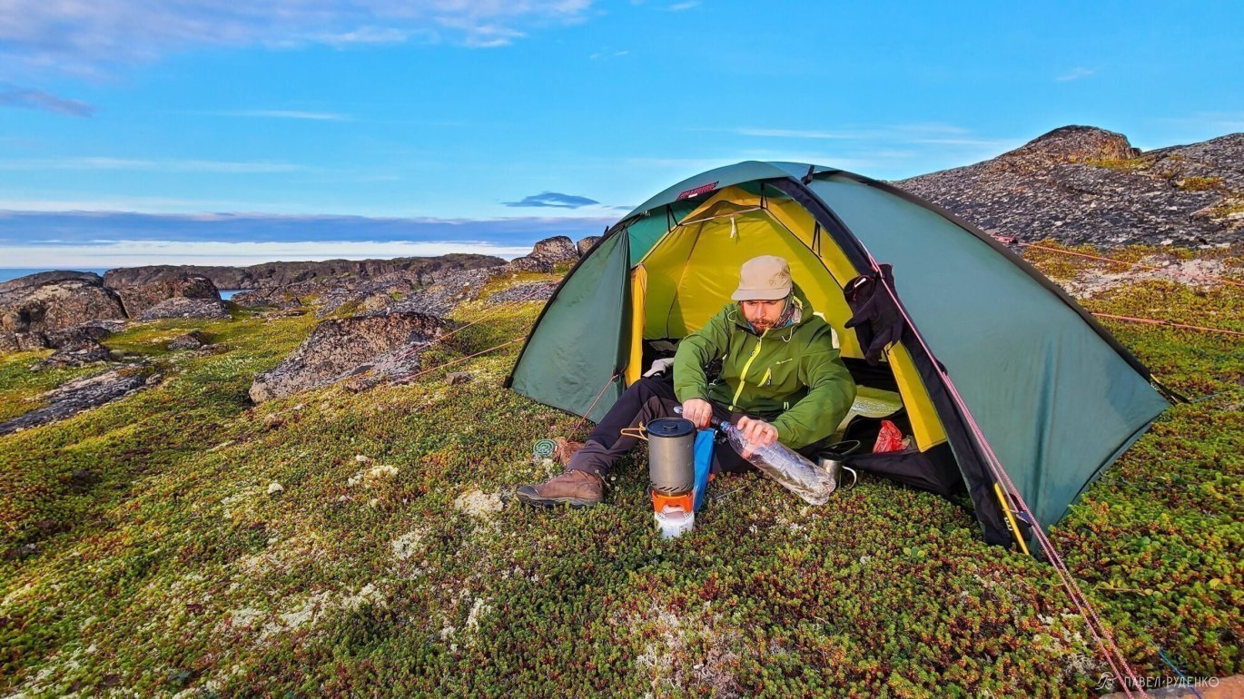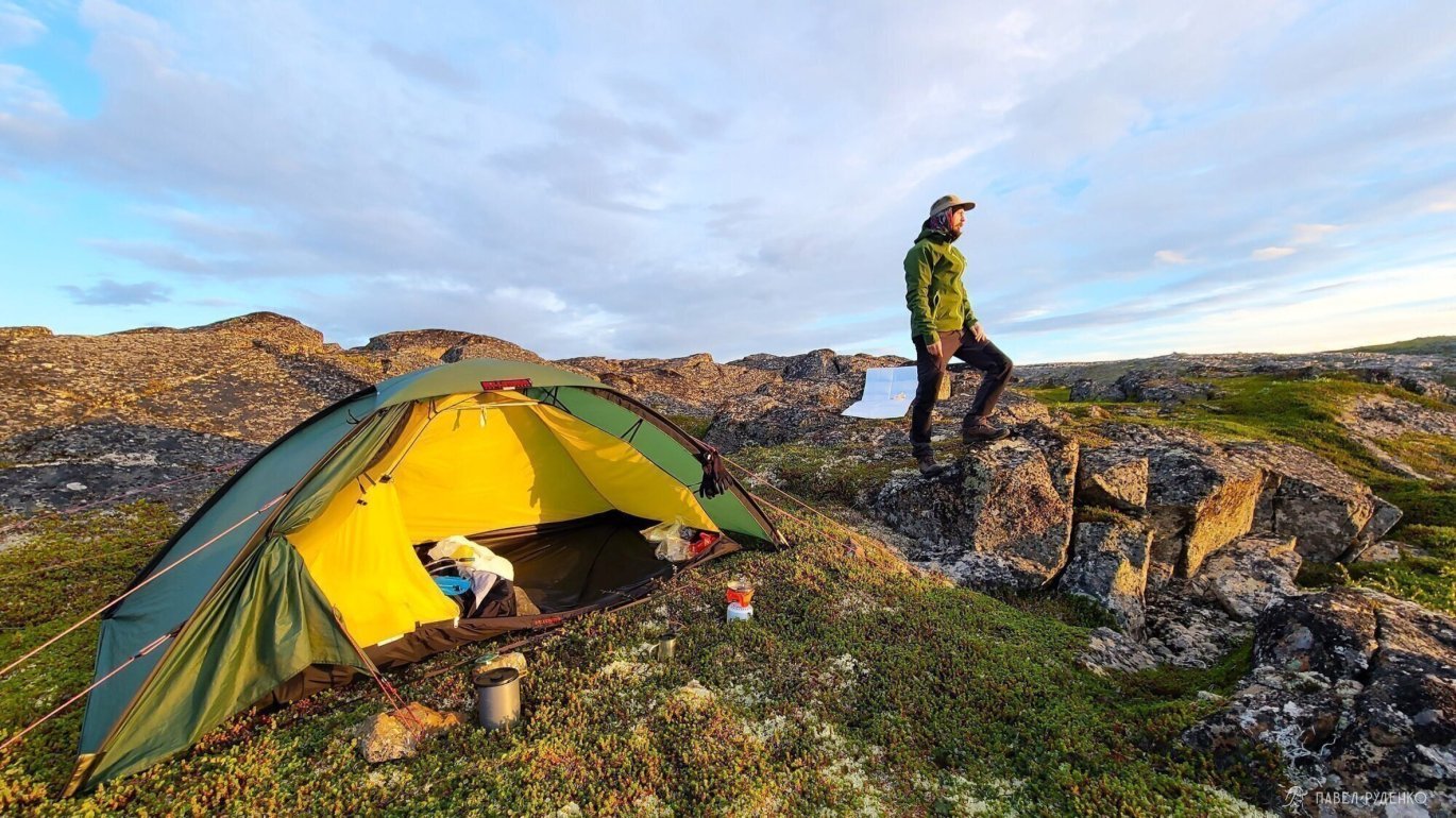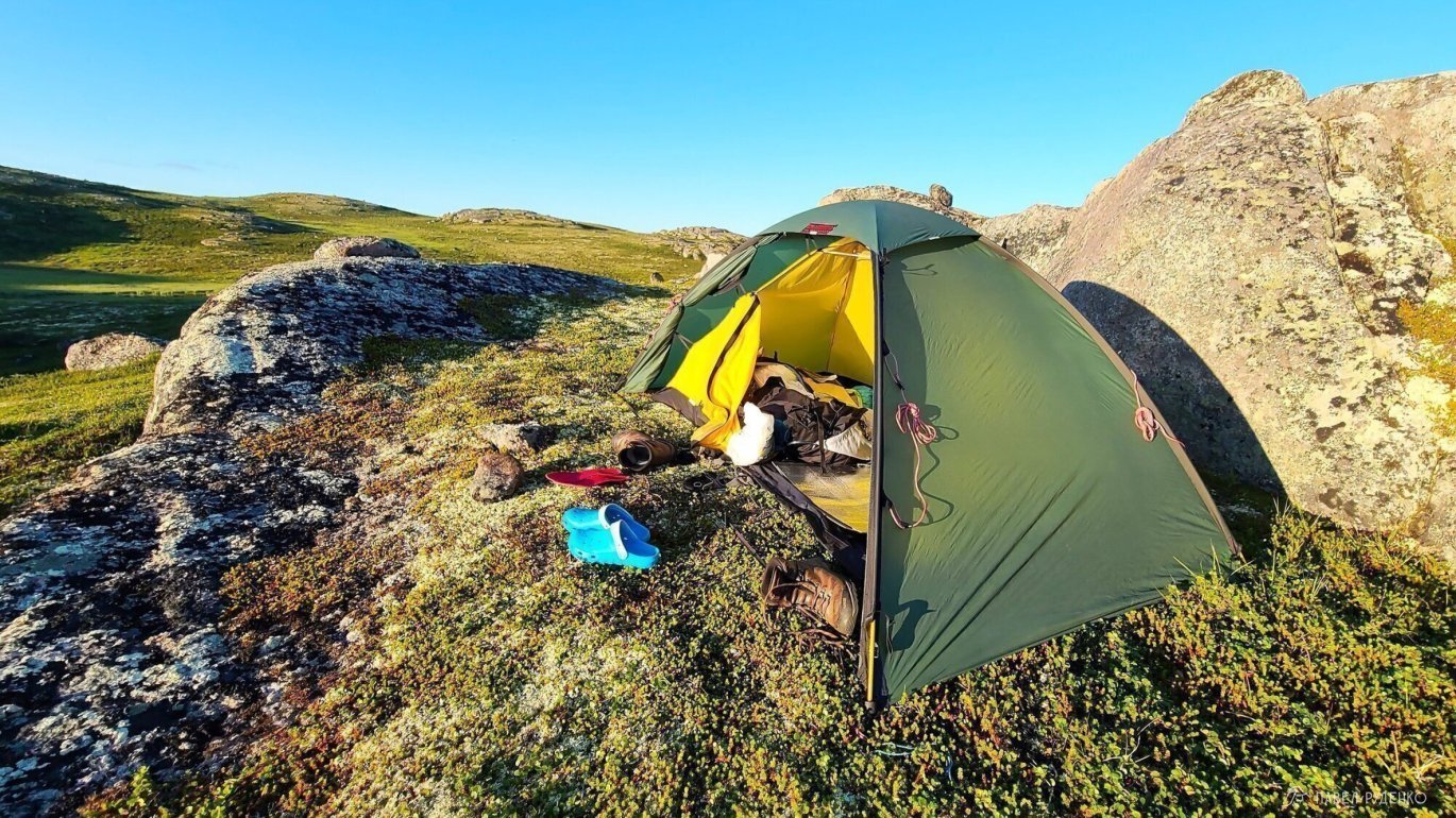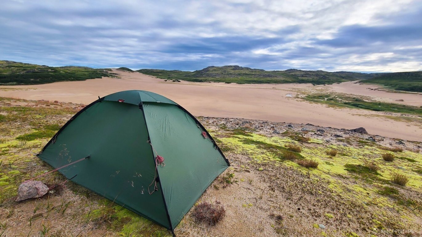 Этой палатке около 7 лет, она прошла множество экспедиций. Я ходил с ней 12 дней по тундре Кольского п-в в районе Баренцево моря изучая как она ведет себя в разных условий. Детали можно рассмотреть подробнее в ролике Сергея ниже: