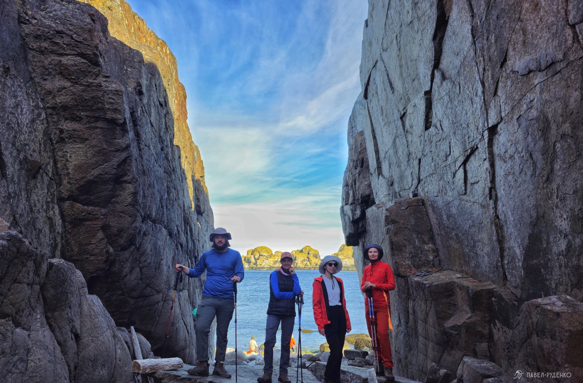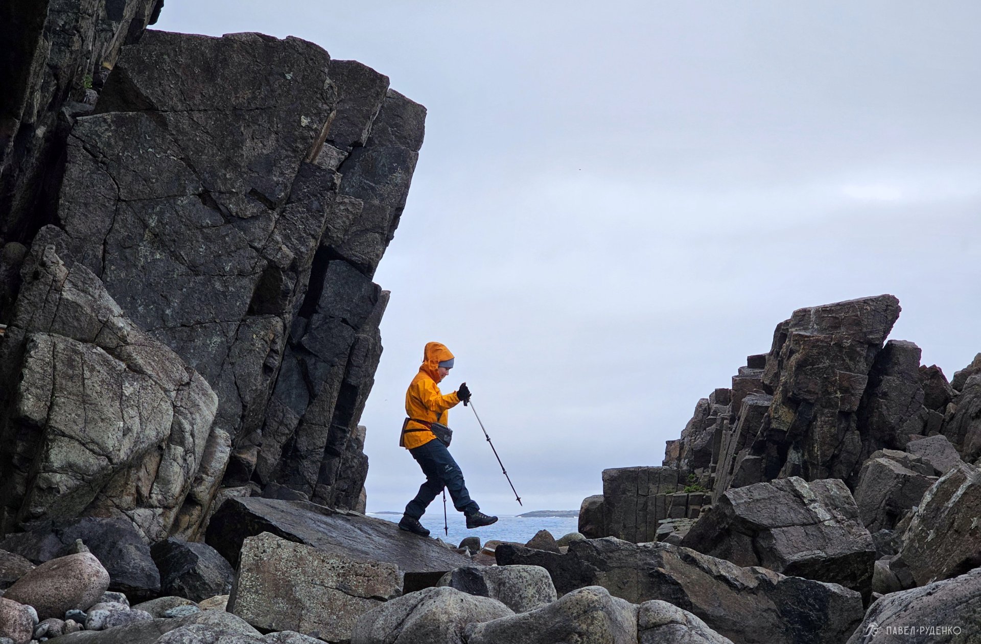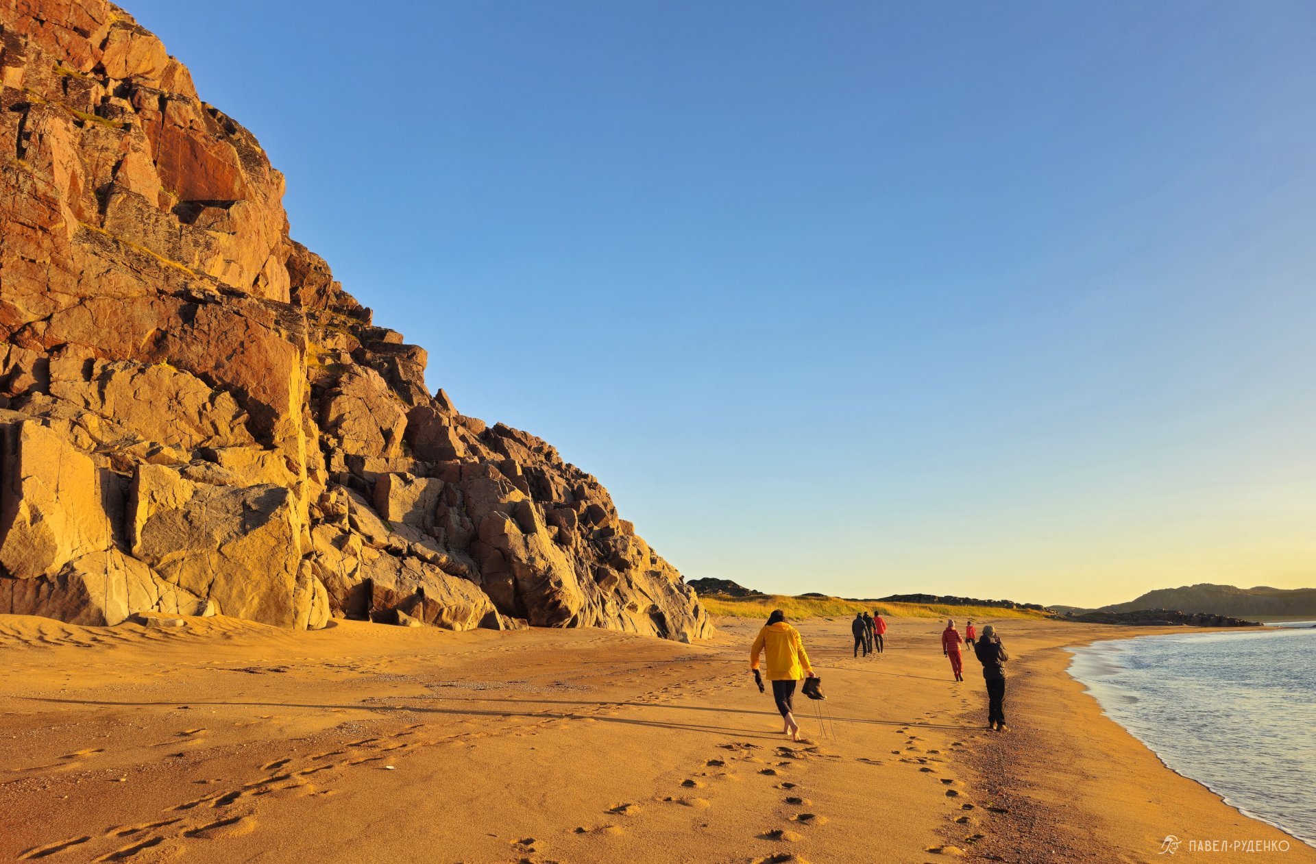 Die Besonderheit der Route besteht darin, dass wir oft leicht bepackt Radialausflüge zu Klippen, Stränden und Ausblickpunkten machen, um jeden Winkel der Nordpolarmeerküste zu erkunden. Das Lager richten wir in den malerischen Buchten ein, aus denen wir jährlich nach den Killerwalen und Grönlandstörchen Ausschau halten, und gehen barfuß über den Sand. Diese Tour ist eine vollkommene Harmonie mit der Natur und eine Gelegenheit, sich in ihre ursprüngliche Schönheit einzuleben.