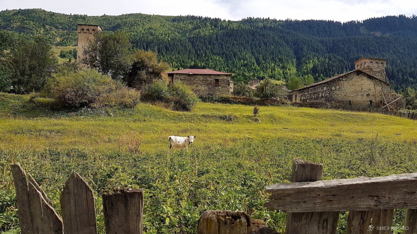 The entrance to the village of Adishi is guarded by a formidable calf. Seeing me, it immediately attacked me with its love and licked all my legs in half an hour.