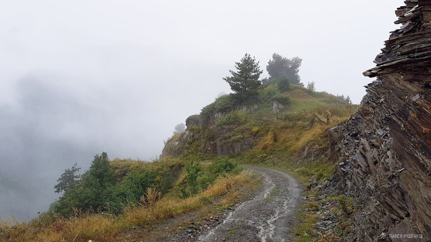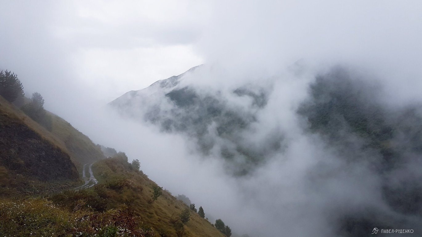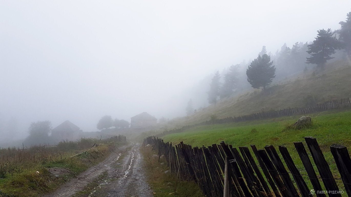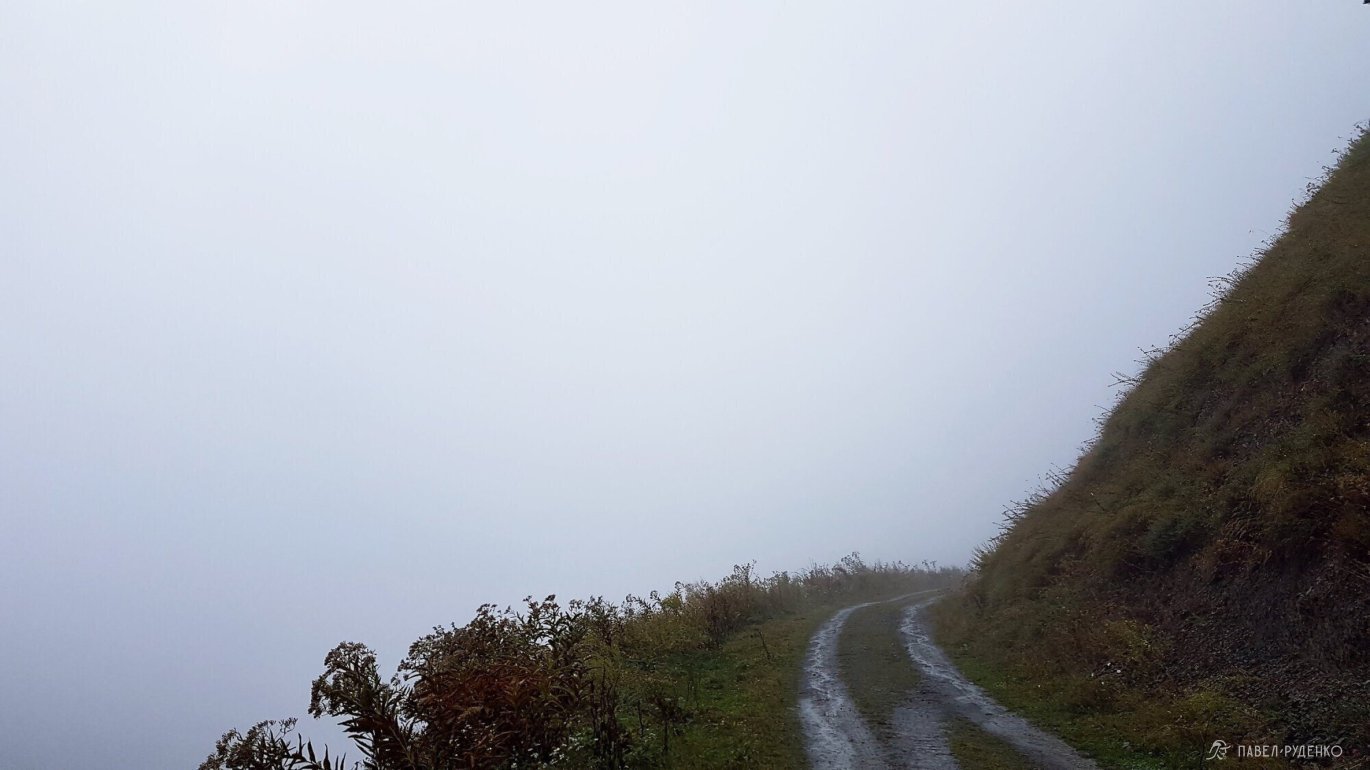 After some time, the clouds closed the road, I look at my feet and suddenly bulls fly out of the cloud at full speed, at the last moment I press against the edge. The bulls are followed by cows and a huge wolfhound with a silent rider. Authentic.