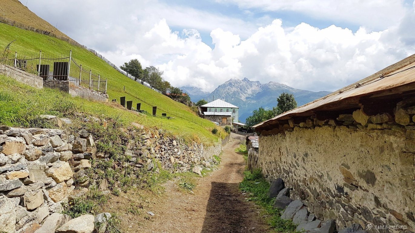 Before starting the hike, be sure to visit the information center, it is located on the main square of Mestia and get a map, consult on the route. After a short section of the road, the trail sharply climbs up and the first settlements on the way are Zardlashi and Murshkeli. There are no people, just a clear feeling of deathly silence, after about 10 minutes I walk along the narrow trail of the village, past the Svan towers and see that the whole village has gathered in one open courtyard. There is a funeral. There is bread on the tables, two tables of bread, the old people greet me with a look, I nod my head and accelerate guiltily, I didn't want to disturb people.