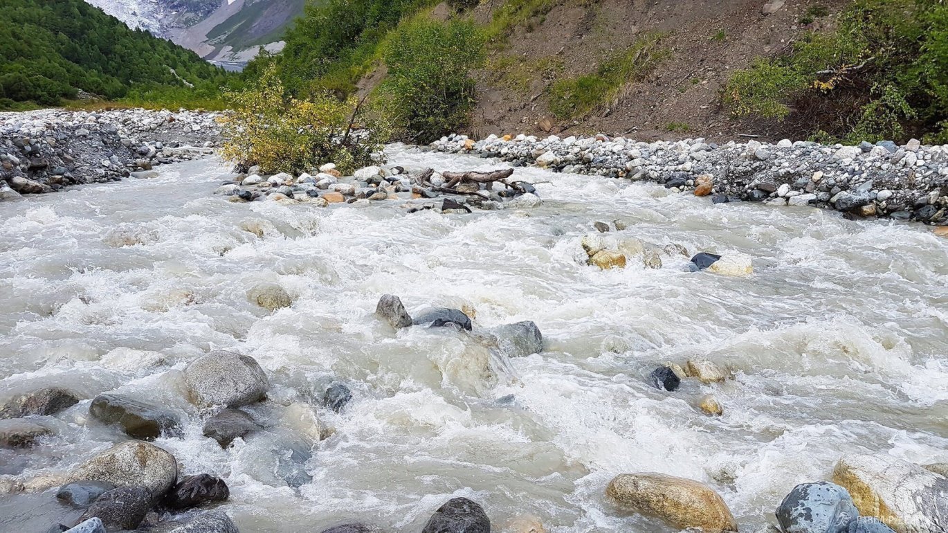 I bandaged my blisters with plaster and only by 13:00 limped to the river, which rushes out of the glacier. It took about 2 hours to look for a place to ford, but everywhere there are deep, rocky sections above the knees with a strong current. Abundant melting of snow and ice under the sun raises the water level twice, so I decide to wait until the next morning. Unfortunately, the forecast showed that the weather was getting worse and it rained all night and the next day. At 8:00 I easily jumped across the stones without even changing into sandals.