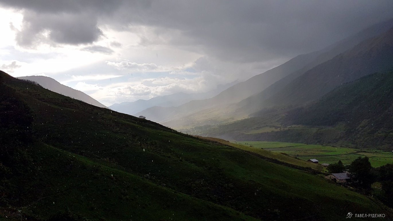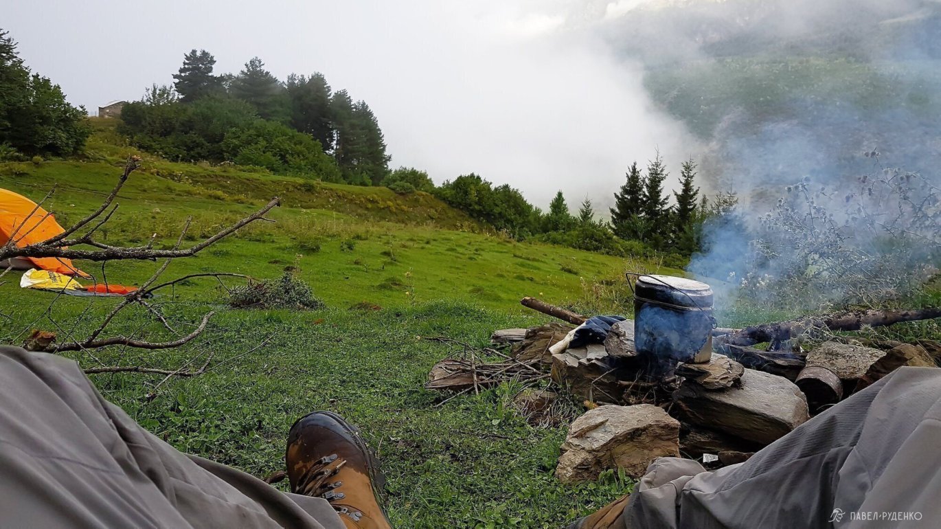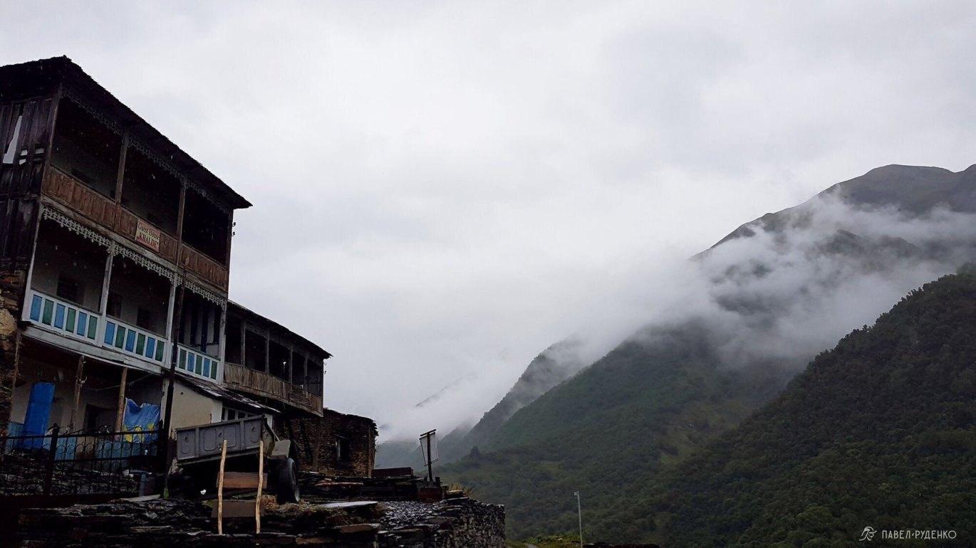 It's raining all day. We come to the village and decide to spend the night in a guest house to dry our things. We stayed in a Svan house, lit the stove, everything is as it should be.