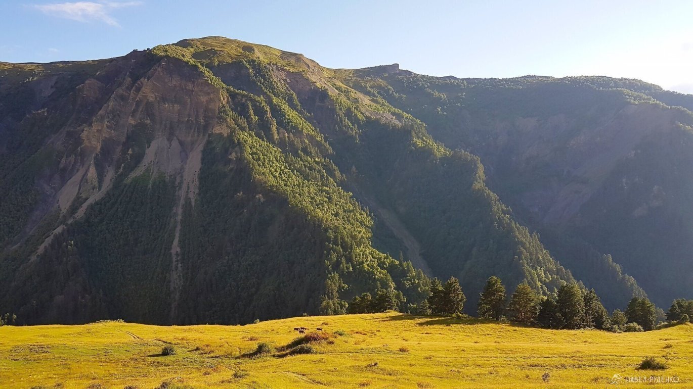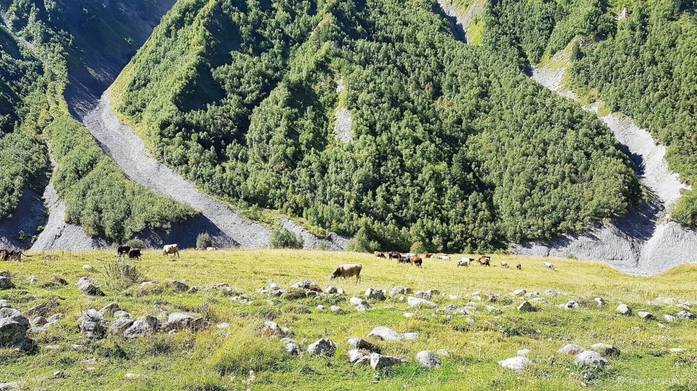 The view of Adishi is simply amazing, although time allows us to go further, but without hesitation I look for a beautiful place for the tent. I set up camp, contemplate nature, play with the calf. One of the most memorable landscapes.