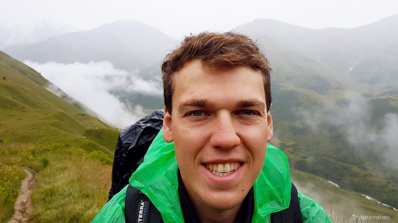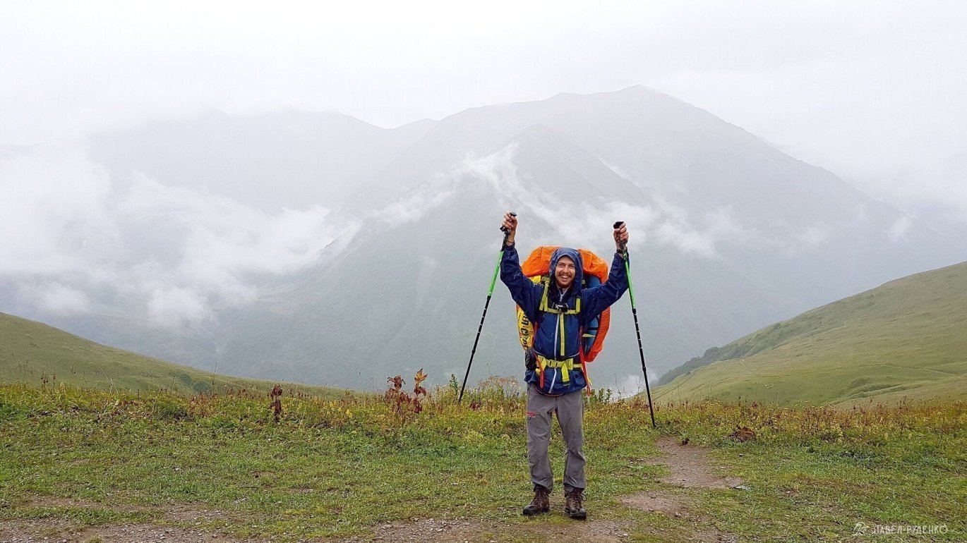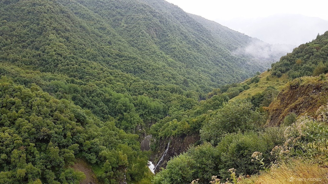Ahead is the pass, I climb and feel vibrations in my chest from the roar of the falling pieces of the glacier. The noise is such that it resonates throughout the gorge. There is wind and incessant rain on the pass.