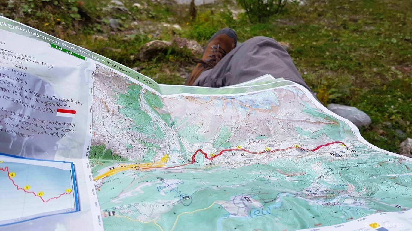 As I said earlier, in the information center in Mestia, you can get a printed map of the entire route. The elevation change and distance are marked there.