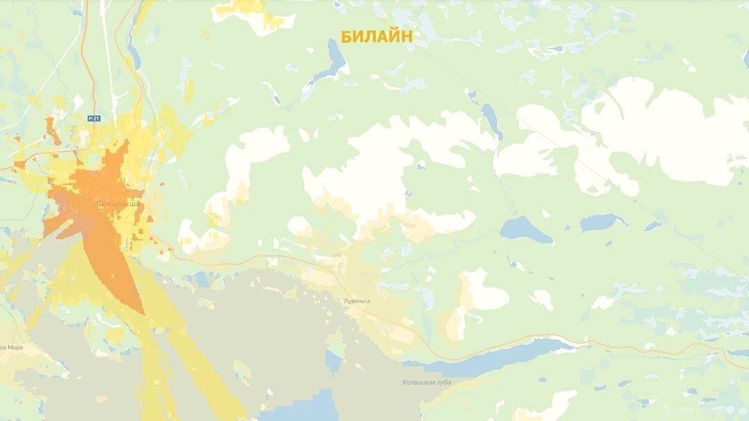 On the Kola Peninsula, MegaFon has the best coverage. I'm a Beeline user, so I always take a second MegaFon SIM card. Below is a map of the coverage of the Big Three.