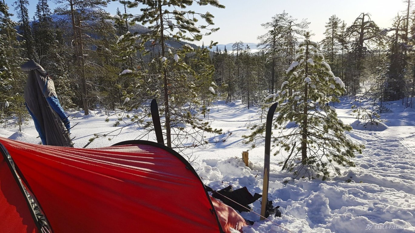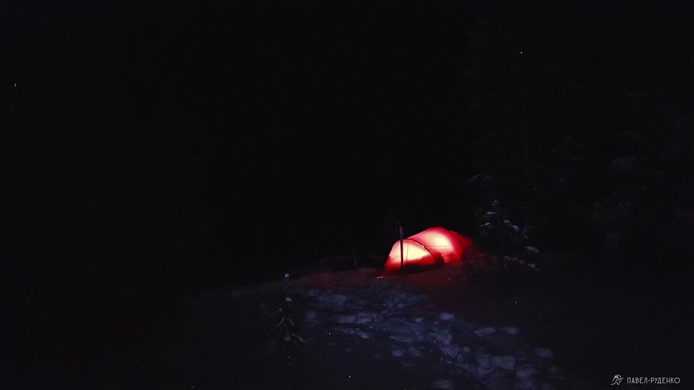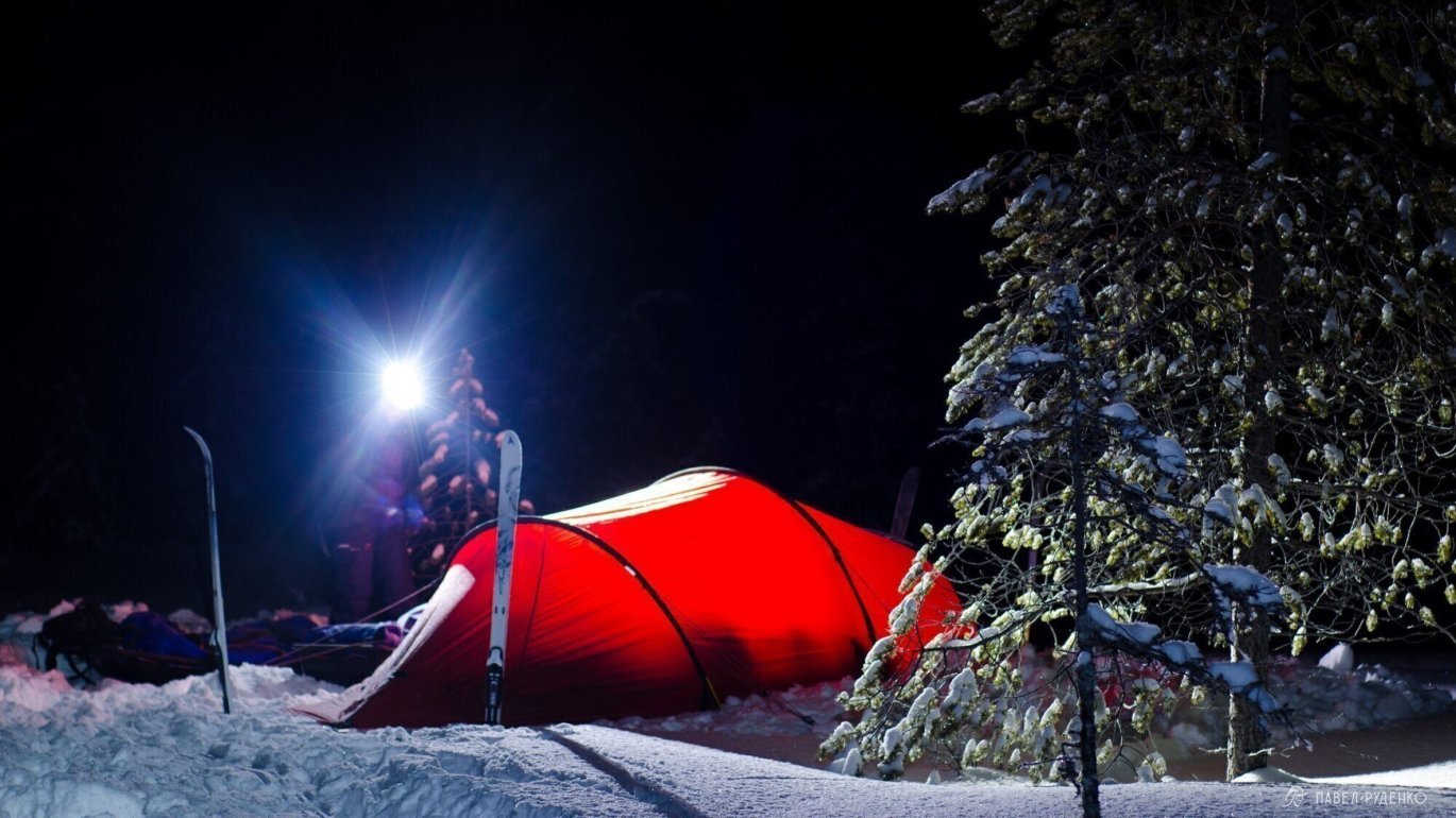 The feelings on a frosty night are completely different than in summer. The moon illuminates the tops of snow-covered pines, and around the tent there are animal tracks. It's hard to tear yourself away from the stars in the sky, but the cold convinces you to climb into your sleeping bag with every minute. And in the morning, when the rays highlight the frost on the tent of the tent, it seems as if you are waking up in a cave.\n