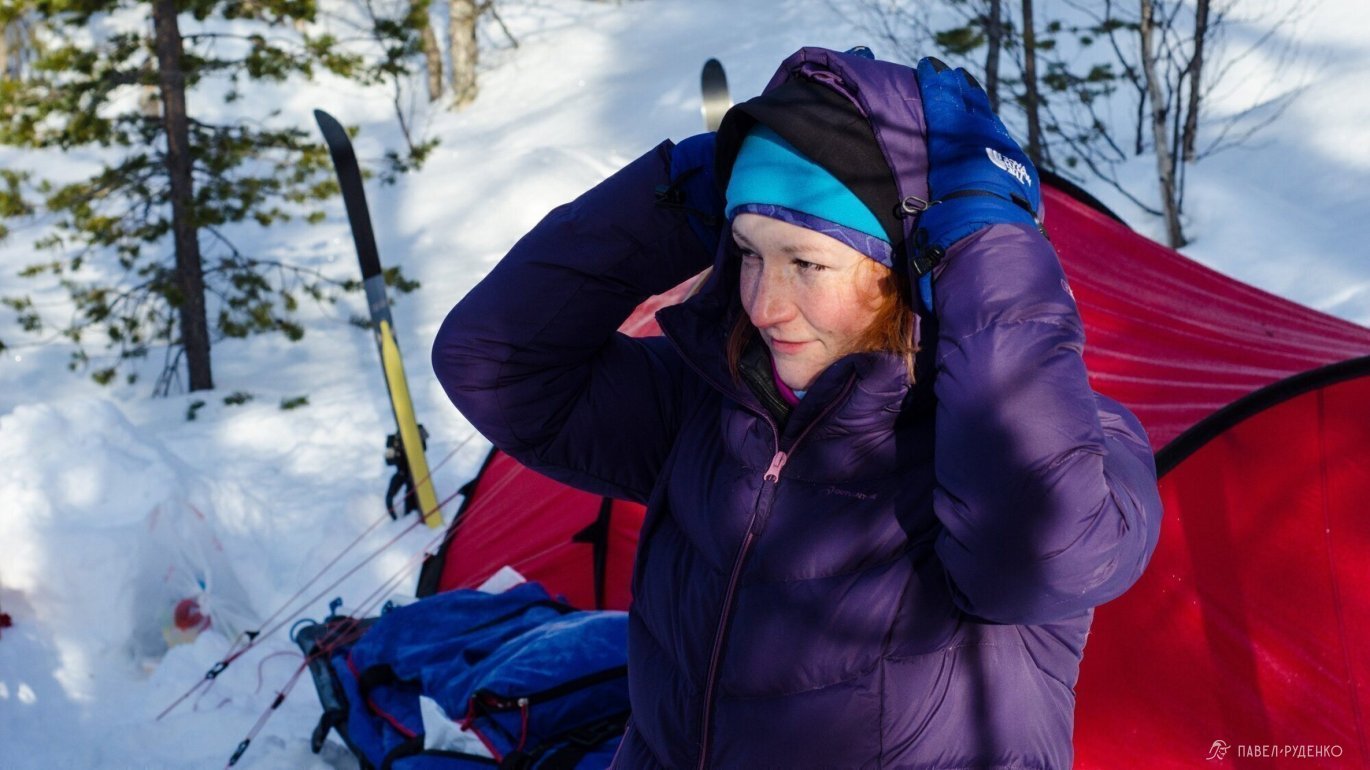 I put on a down jacket during stops and snacks. After 10 minutes, the body starts to cool down at stops, the blood from the limbs goes to the chest, and hands start to freeze in 5 minutes. Therefore, it's important to put on a down jacket at each stop.