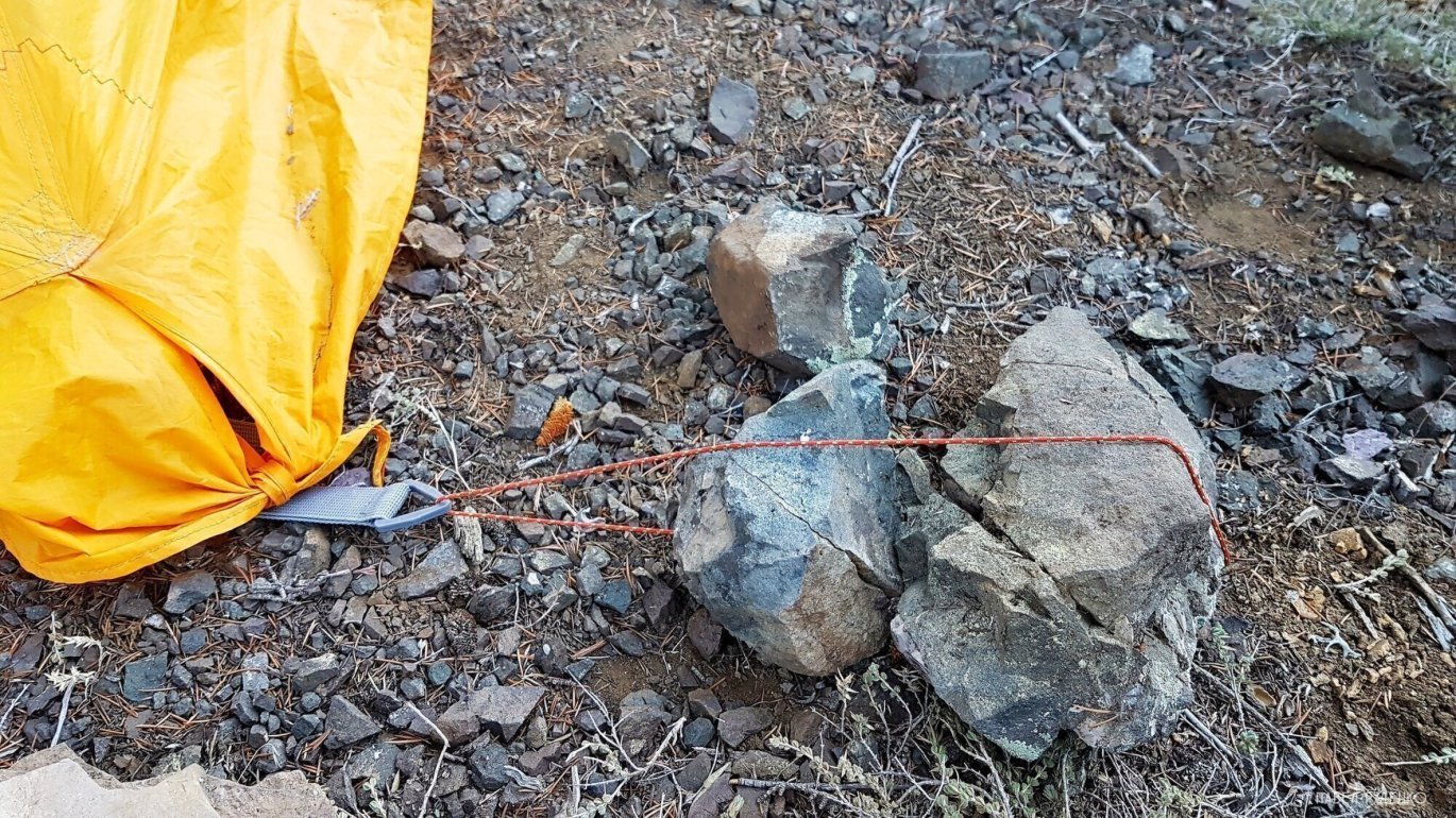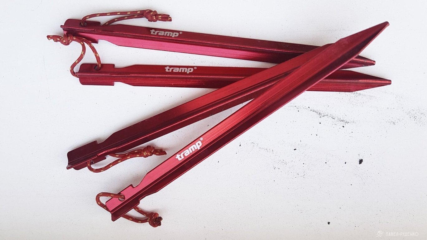The set includes aluminum, round pegs. They work, I went on many hikes with them, but in comparison with two or three-sided pegs, they are terrible. They bend, spin in the ground, and are heavy. I replaced them with lighter and more convenient ones. I additionally tied 2 mm ropes to all fixing points, as in most regions where I went, there are enough stones not to take stakes. These are the Kola Peninsula, the Caucasus, the Lycian Trail, the Zailiyskiy Alatau.