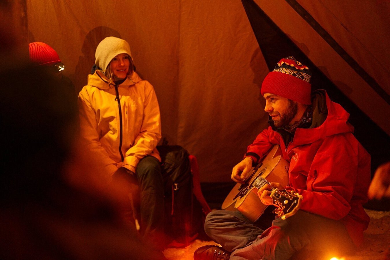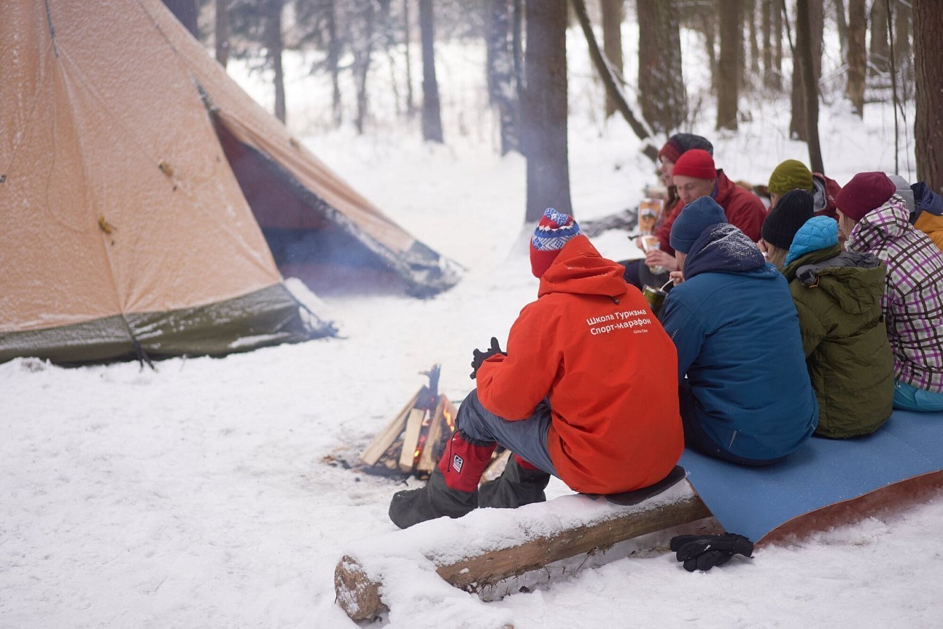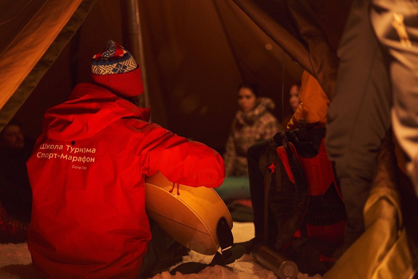 - Two-day ski and snowshoe hikes with an overnight stay in a warm tent with a stove for 18 people. A short lecture on skis and snowshoes. Master classes: learning to ski and use snowshoes, rules for using burners, learning to cook, how to make a fire, setting up tents and tarpaulins, detailed understanding of the features, how to dress for a hike, which sleeping bag and mat to use. In the evening, we sing songs and play the guitar.