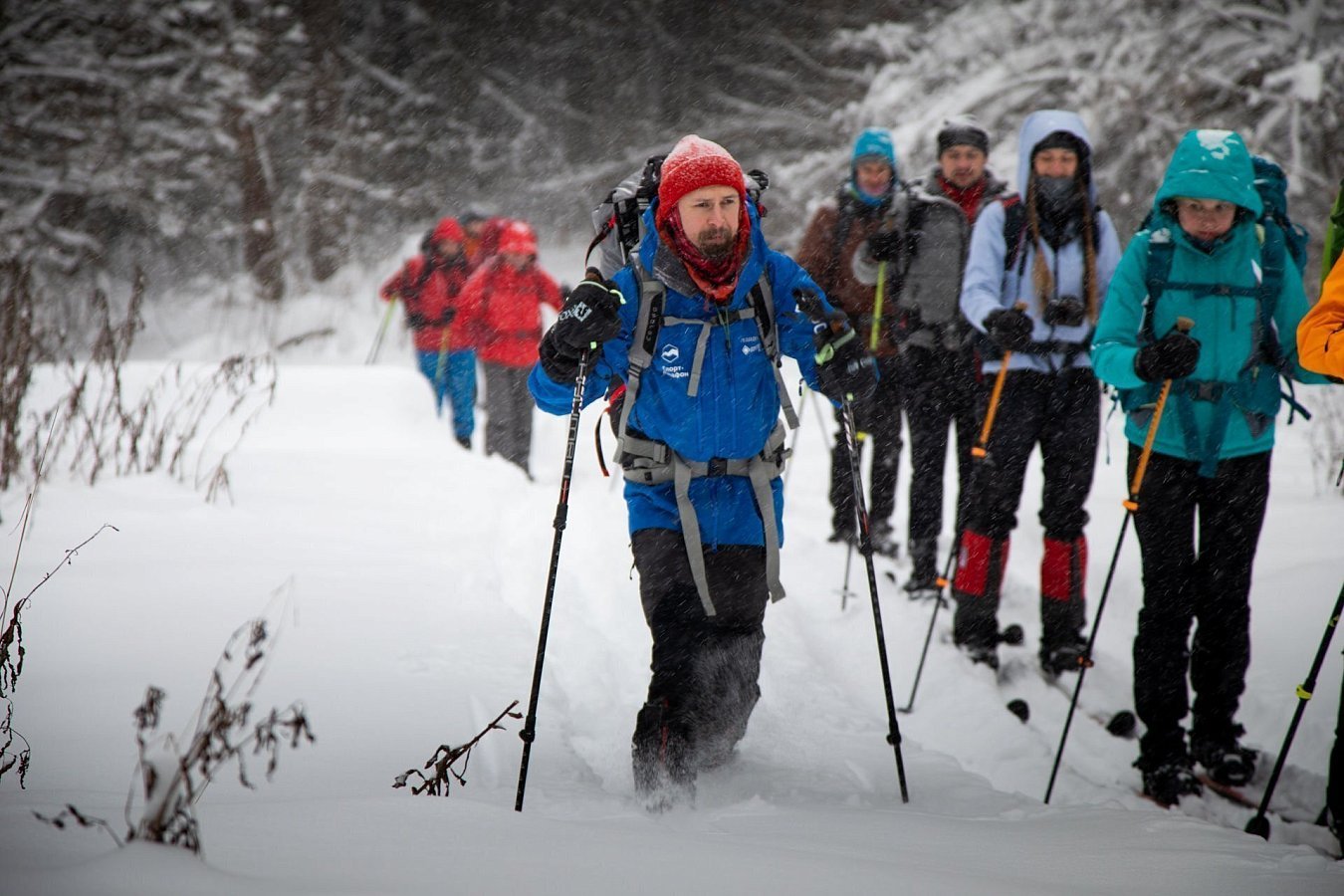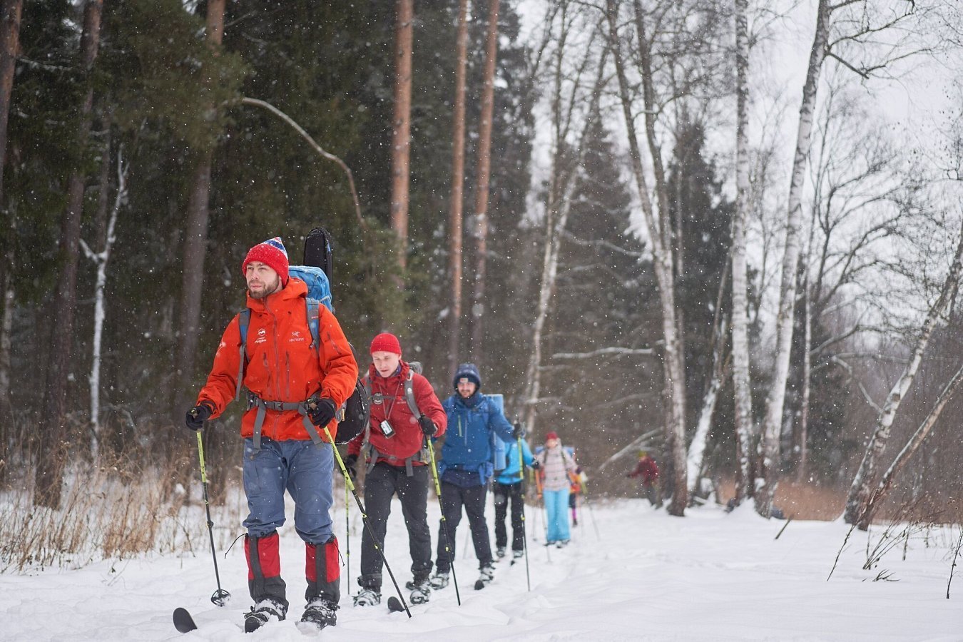 - One-day ski and snowshoe hikes through the forests of the Moscow region. A short lecture on skis and snowshoes. Master classes: learning to ski and use snowshoes, rules for using burners, learning to cook, setting up tents and tarpaulins, and understanding how to dress for a winter hike to stay warm.