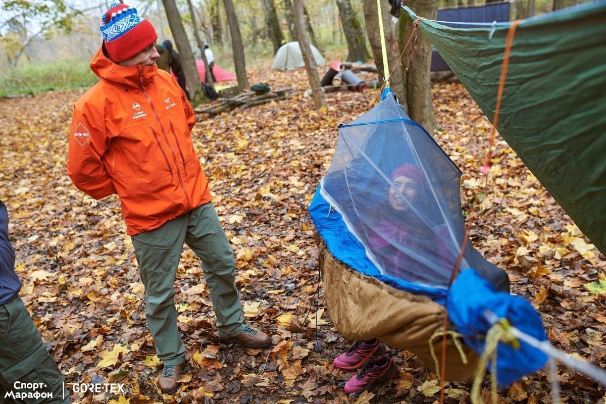 - One-day hikes through the forests of the Moscow region. A short lecture on backpacks and sleeping bags. Master classes: orientation with a map and compass, rules for using burners, learning to cook, setting up hammocks, tents, and tarpaulins, and understanding them.