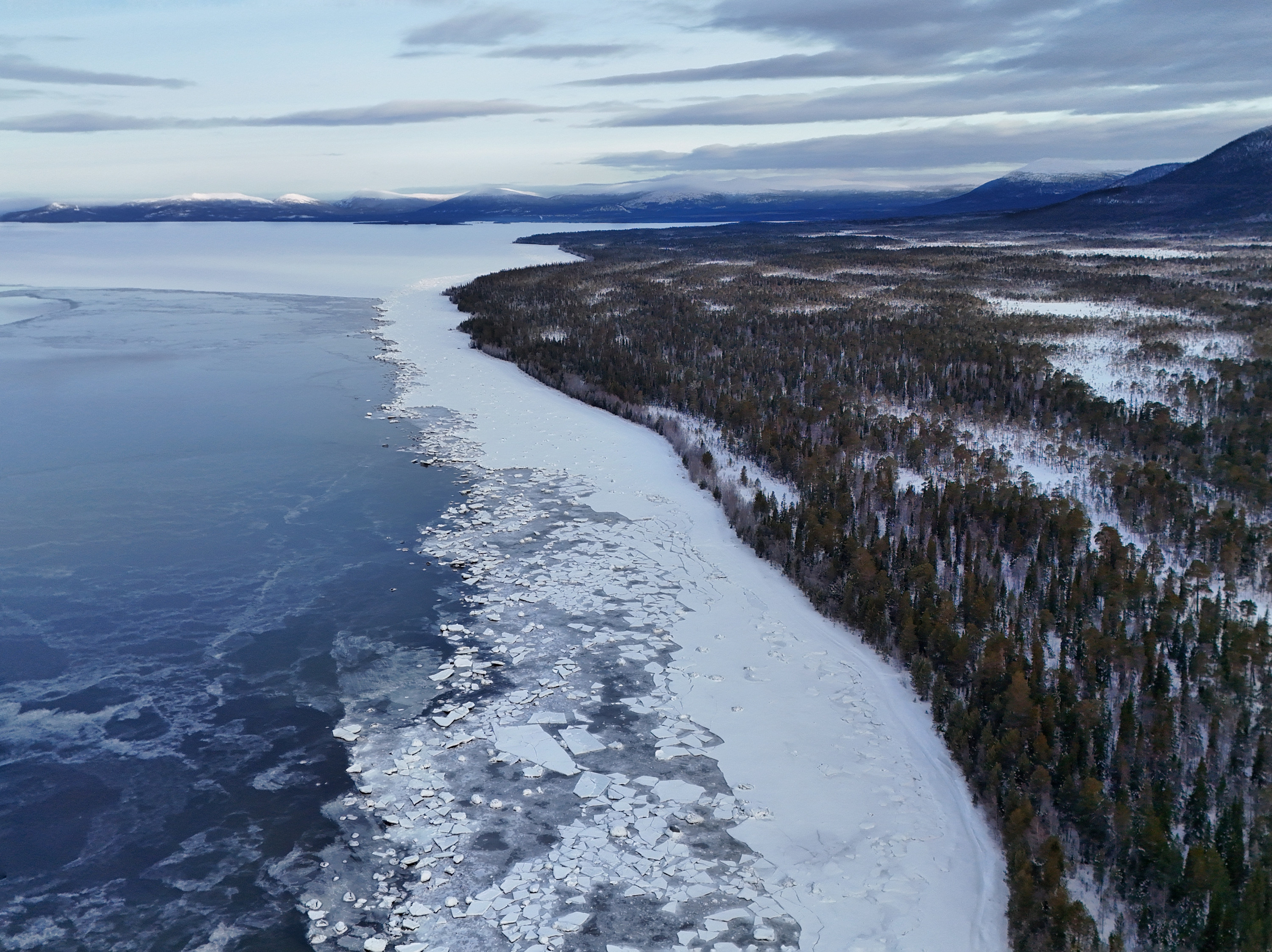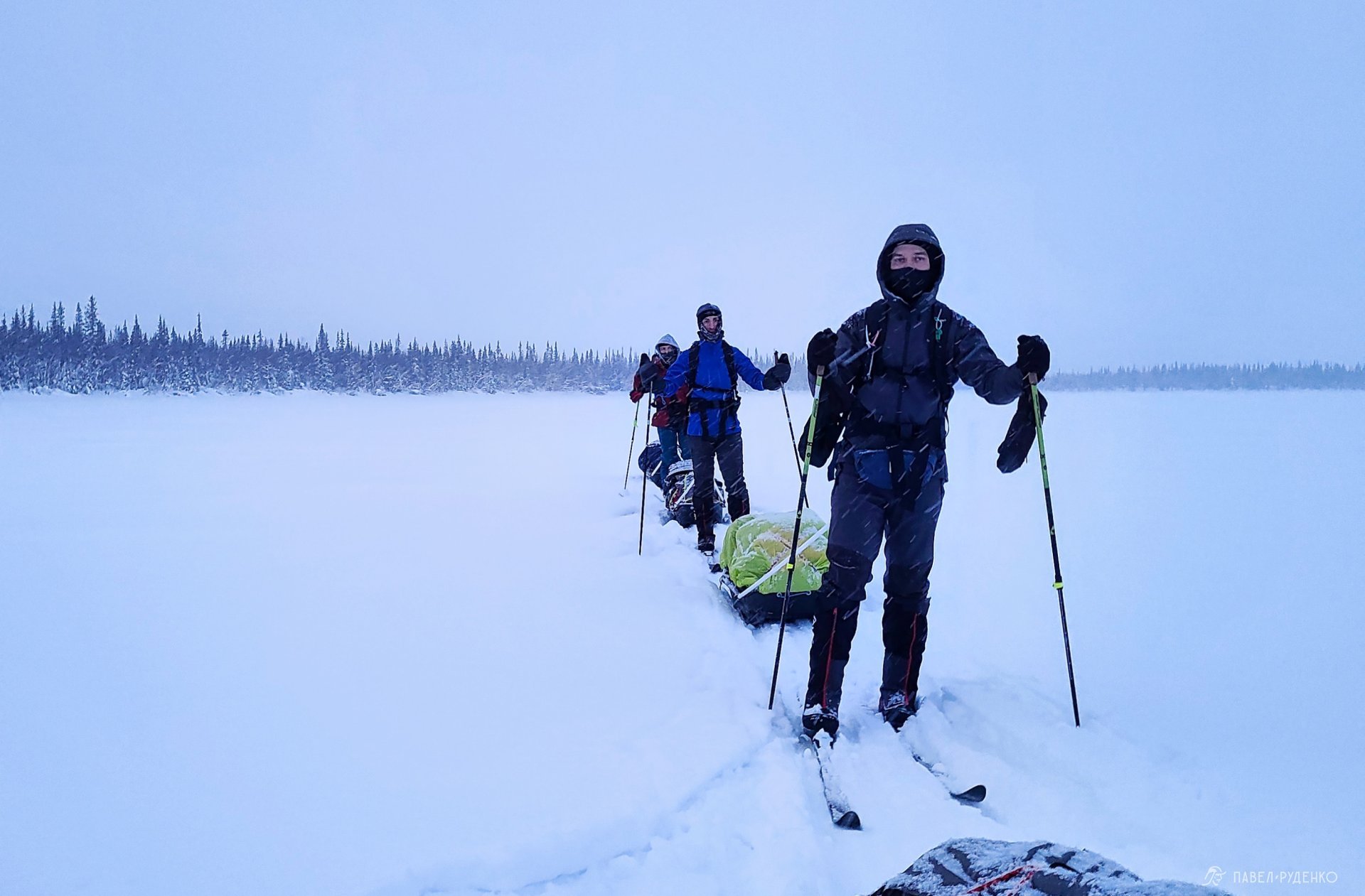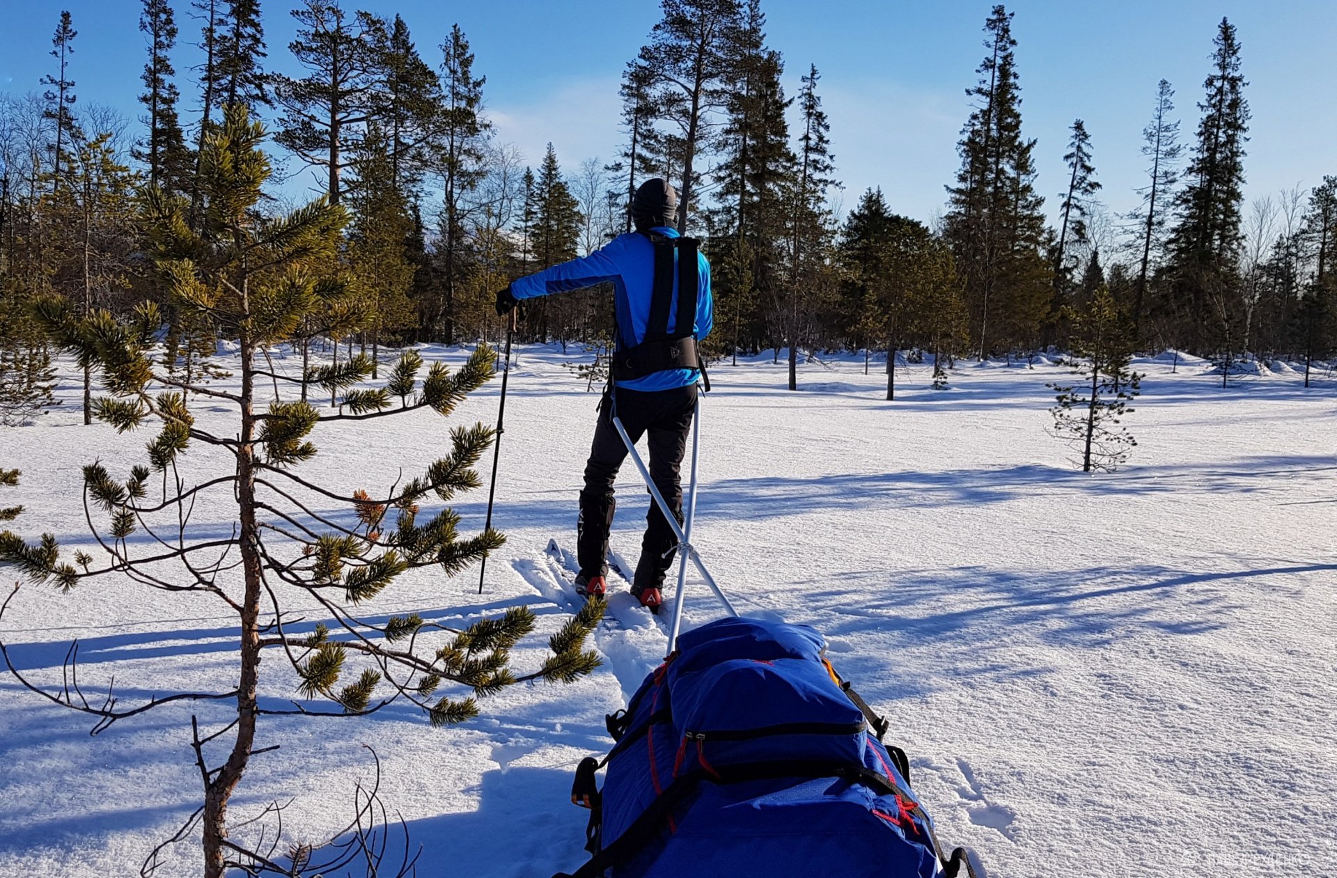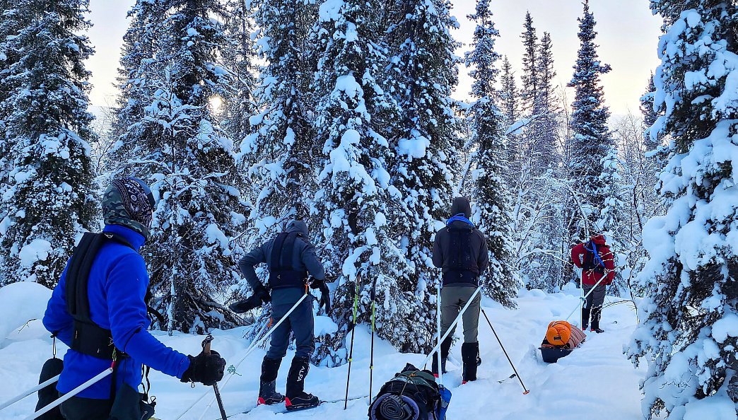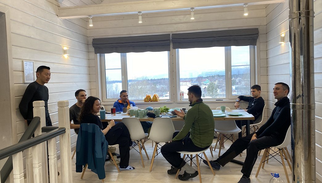 El primer día es de preparación. Hospedaje en un cómodo chalet en la orilla del Mar Blanco. Aprendizaje de técnicas de esquí, instalación de tiendas y habilidades de turismo invernal. Una experiencia única de flotación en hielo (ice floating) — natación en un traje seco especial entre los hielos del Mar Blanco. Estos trajes se utilizan en expediciones al Polo Norte para superar zonas acuáticas. Exploración del norte pomor.. La ruta pasa por una de las regiones más pinturas de la Laponia rusa. Avanzamos por el Mar Blanco congelado, dejamos el primer rastro por la taiga septentrional y realizamos salidas radiales desde el campamento hacia las colinas de tundra con vistas panorámicas.